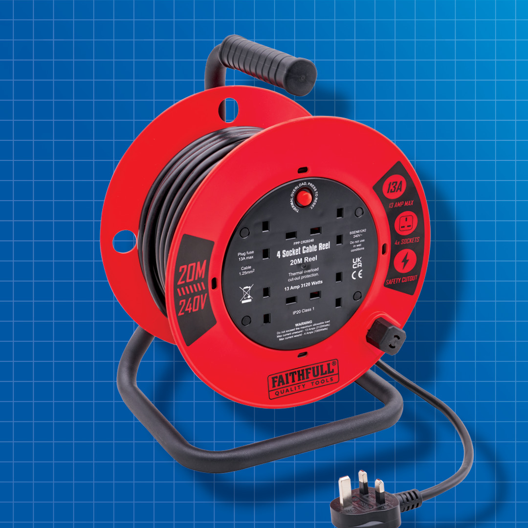 20M CABLE REEL 13A £24.99 ← Back to shop Description Description & Specification Max lood: Fully unwound: 3120W (13A) Fully wound: 1000W (4A) Related products BOSCH RADIO FM-AUX BLUETOOTH-USB £109.00 Read more Faithfull 8 Piece Soft Grip Screwdriver Set SDSET8PR £13.33 Read more Folding Knife With Blade Lock £13.99 Read more Faithfull WBC75 Wire Cup Brush for Grinders £6.93 Read more